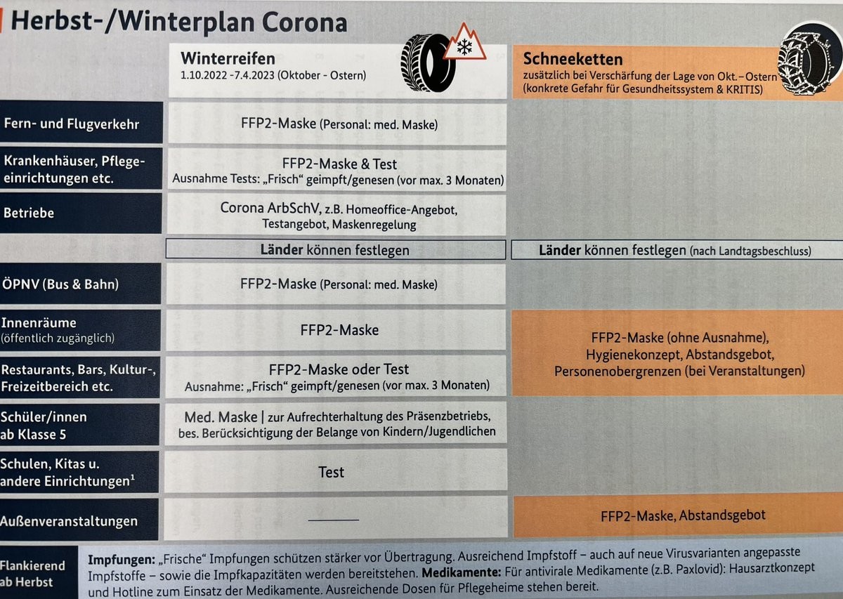 Der Entwurf für neues Infektionsschutzgesetz ist fertig. FFP2 Masken im Innenraum von Anfang an. Ausnahme: Nachweis Tests, frische Impfung oder frisch Genesen in Gastro oder ähnlich. Wenn Fallzahl stark steigt: Masken auch draußen wo Abstände nicht reichen und Ober…