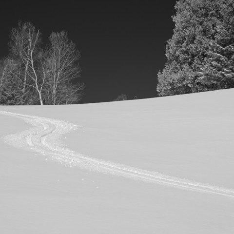 I carried my infrared camera with me while Nordic skiing Superior National yesterday. It was surprisingly fun to ski the fresh powder on the golf course. I decided to shoot all black and white and square. Phone edit.