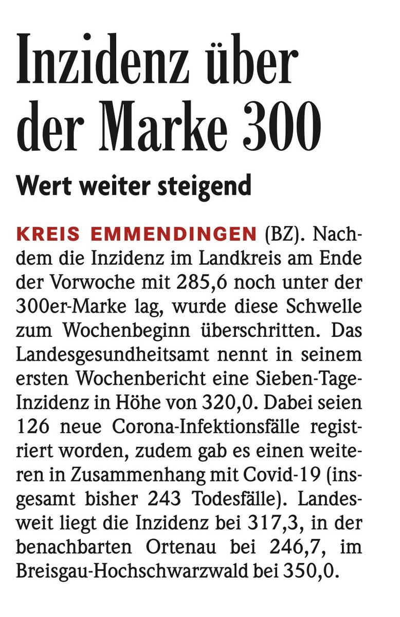 Im Gegensatz zum Lokalteil Freiburg, meldet die BZ #Emmendingen noch #Corona #Inzidenzen und die steigen 📈wieder…