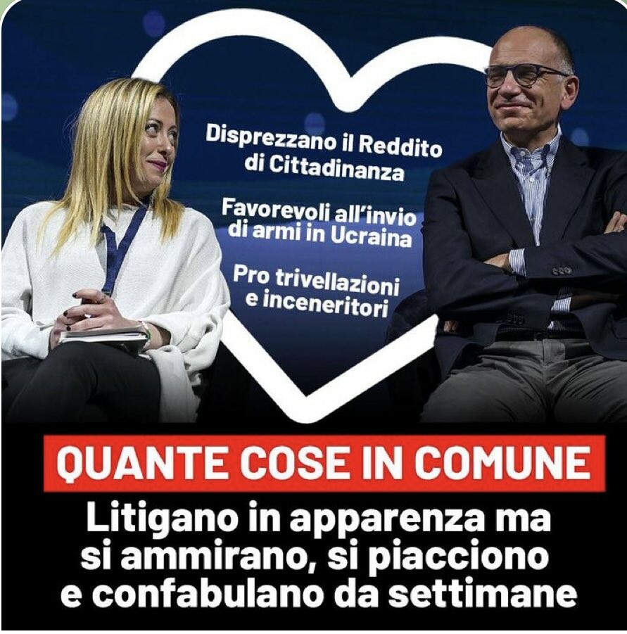 Solo apparentemente litigano, a guardar meglio Enrico Letta e Giorgia Meloni si ammirano e si piacciono. È da settimane che confabulano. Non sappiamo se in inglese, spagnolo o francese, come amano copiarsi e dilettarsi nei loro videomessaggi.