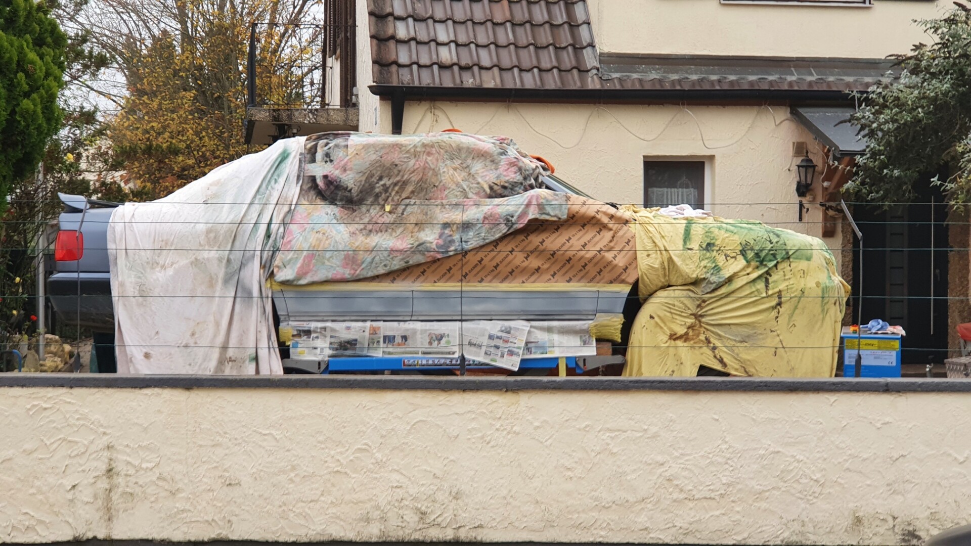 Warum ist das Auto auf einer #hebebühne und wird dann verhüllt? Hat jemand #eineidee, warum #meinnachbar das macht?