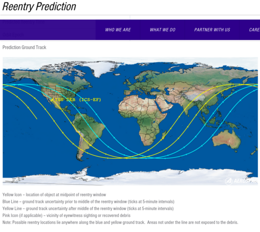 Friday night's train of fireballs over Northern & Central California matched the expected re-entry time & course of ISS DEB/ICS-EF (database entry 45265), Japan #JAXA's Inter-orbit Communication System which was discarded as obsolete in 2020. https://aerospace.org/reentries/iss-deb-ics-ef-id-45265