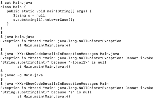 "The feature can be toggled with the new boolean command-line option -XX:{+|-}ShowCodeDetailsInExceptionMessages"
