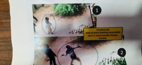 Three ABVP terrorists, identified on camera, underground, with the help of the police.