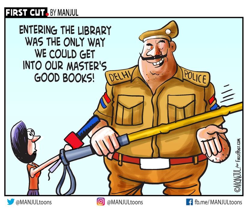 Down with fascism! Down with Sanghism! #JamiaUnderAttack https://www.indiatvnews.com/news/india/cctv-video-shows-police-beat-students-jamia-library-december-15-589354