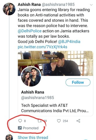 Somebody is going to great lengths & cost to peddle hatred. Paid Tweets ? #JamiaUnderAttack