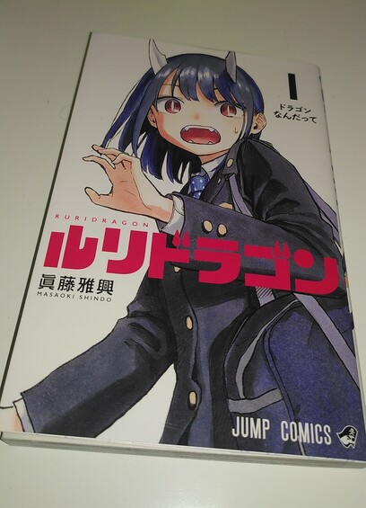 Well, finished reading #ruridragon kinda sad that there isn't more of this manga. Either way, fun manga. Also, great for #JapaneseLearning because it is relatively easy to read, partially because all of the text has furigana (the little hiragana/katakana symbols next to / on top of kanji, telling you how that kanji is pronounced).