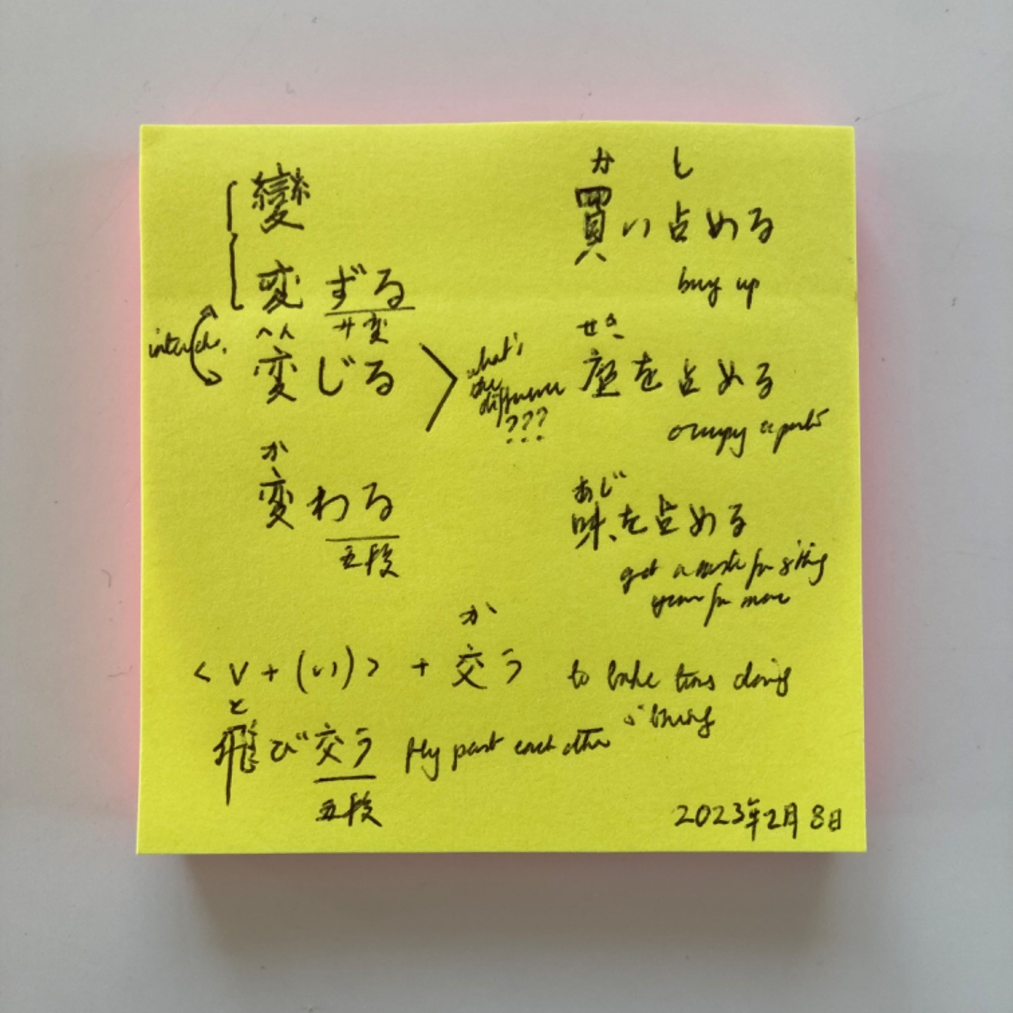 I stumbled upon a bunch of semi-archaic words today, but I think I’ve found a new rule. There are some one-kanji words, read in the on-reading, that can be turned into verbs using ずる (the rendaku/voiced form of する). Some of these have undergone changes — from regular use — so they show up as じる (monograde) from the -i stem. Really helpful from a Chinese perspective!