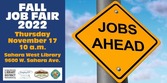 Don't miss our Fall #JobFair at #SaharaWestLibrary on November 17 with @EmployNVSouth@twitter.com, @JustinJonesNV@twitter.com & @ClarkCountyNV@twitter.com ! We will have 50 companies offering employment opportunities & many will be hiring on the spot 😎. Learn more:👉 https://bit.ly/3U0zvdL #LibrariesDoThat