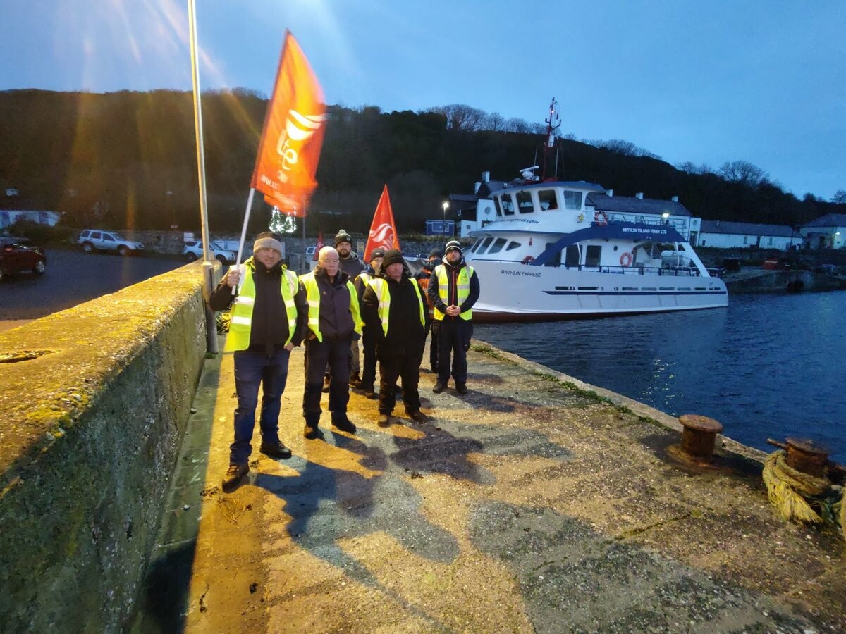 Rathlin Island Ferry workers took their first day of strike action today for a fair pay increase after 3 years of pay stagnation. Workers are calling for the ferry operator to give them a real cost of living increase! #solidarity #JobsPayConditions ✊