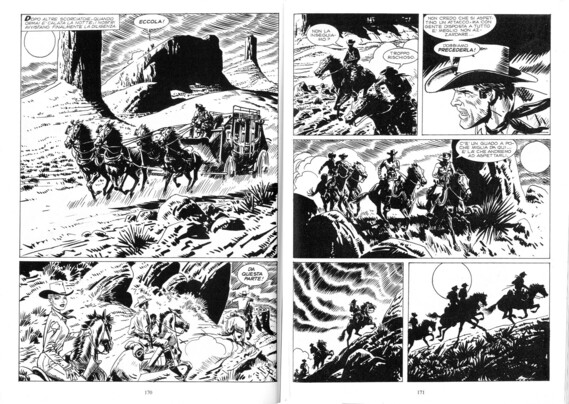 This panel in particular is so impressive; the way all the texture lines in the frgd figure indicate his movement, the urgency of the horse's pose, the lines of the clouds; everything is coming together to create a sense of dramatic intensity.