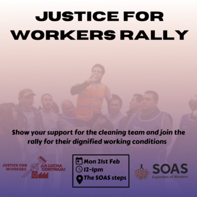 Justice for Workers calls for a rally to support SOAS cleaning staff