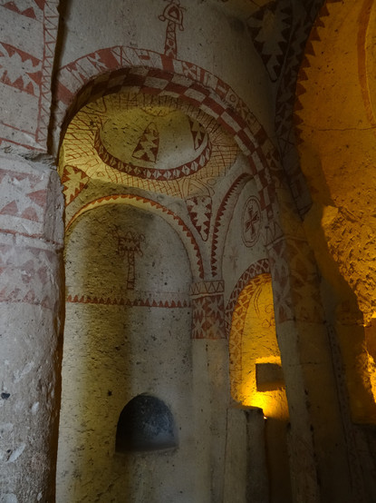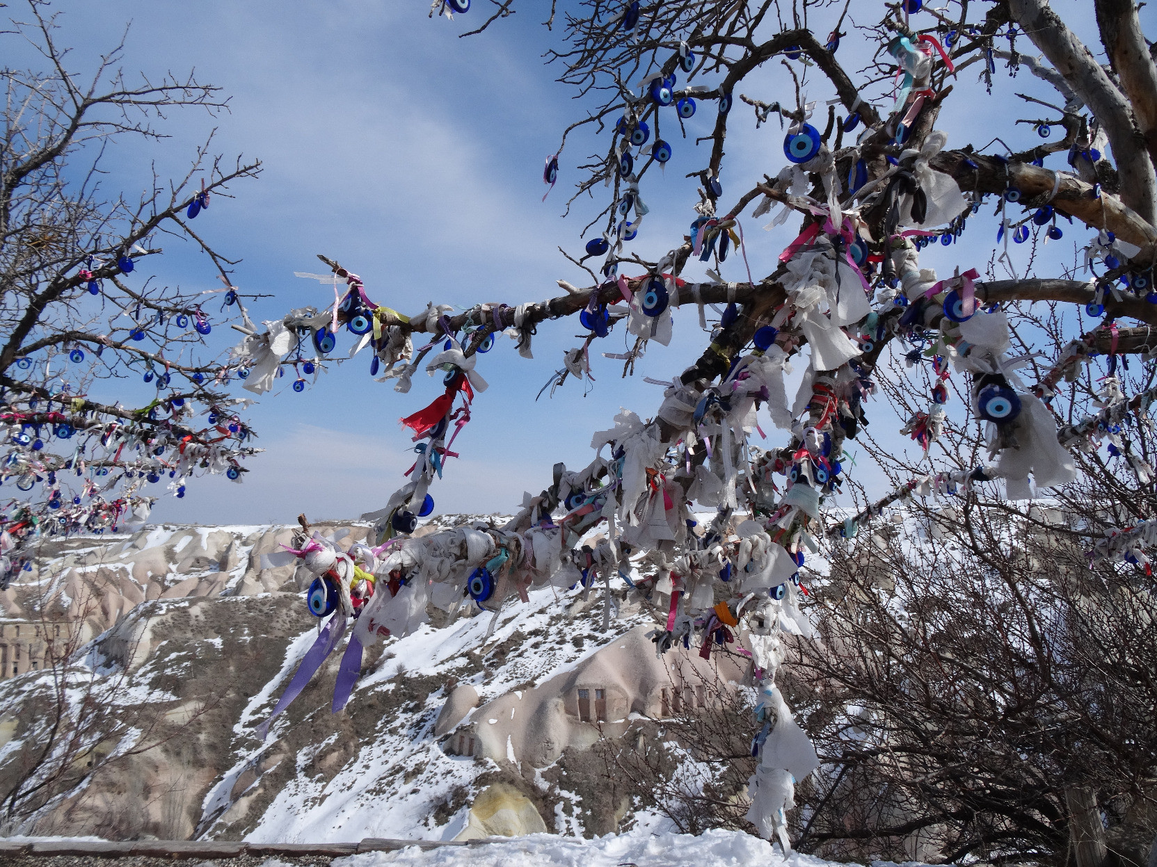 Tufflandschaft mit Höhlenarchitektur und Nazar-Amuletten zur Abwehr des bösen Blicks #Kappadokien #foto #photo