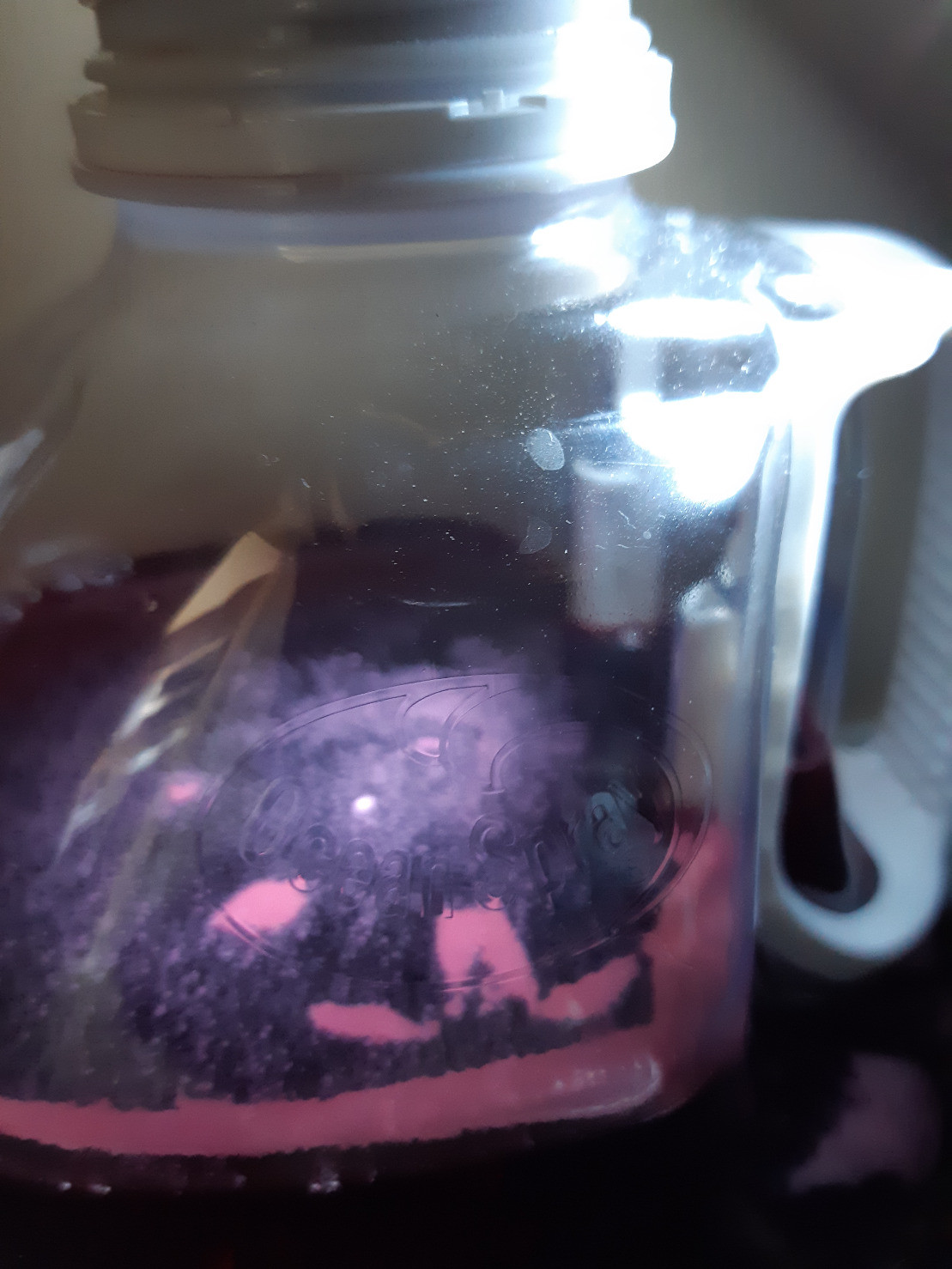 The wildest thing about my cranberry wine experiments has been that when I look closely at the bottle with the wine yeast in it, the thin foam forms a well-defined, geometric star pattern.