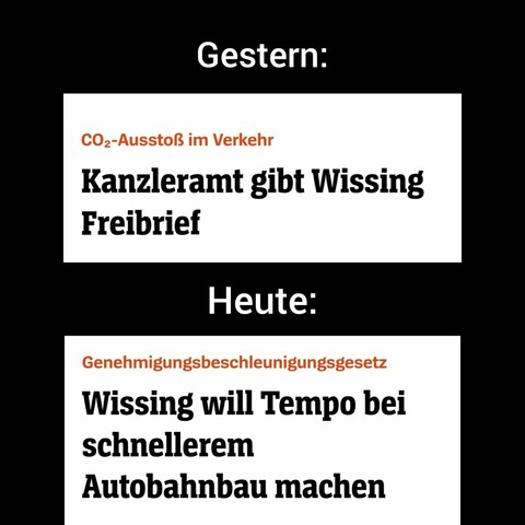 Natürlich kein Tempolimit und Gesetzesänderung zugunsten Volker Wissing. Unfassbar.