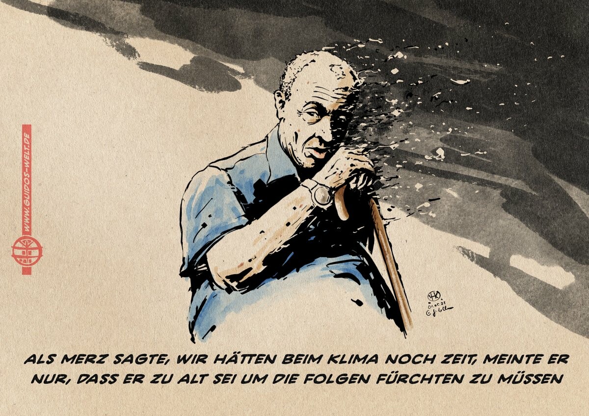 Wenn die heute 60 bis 80 jährigen Politiker wie Friedrich Merz sagen, dass beim Klima noch Zeit sei, dann sagen sie eigentlich nur, dass sie erwarten nicht mehr da zu sein, wenn es hier wirklich knallt. Und dass sie vorher nicht gedenken bei der Geschwindigkeit vom Gas zu gehen.