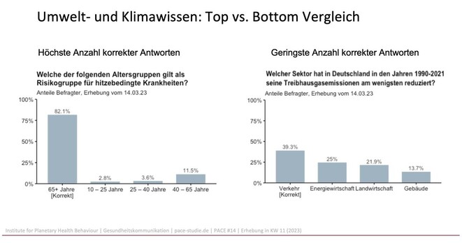 Welcher Sektor hat in DE in den letzten Dekaden seine Emissionen am wenigsten reduziert? #Verkehr. Das wissen nur 39%. Das ist die Frage mit den wenigsten korrekten Antworten beim #Klimawissen in der http://pace-studie.de. Mehr Wissen, mehr Handlungsbereitschaft.