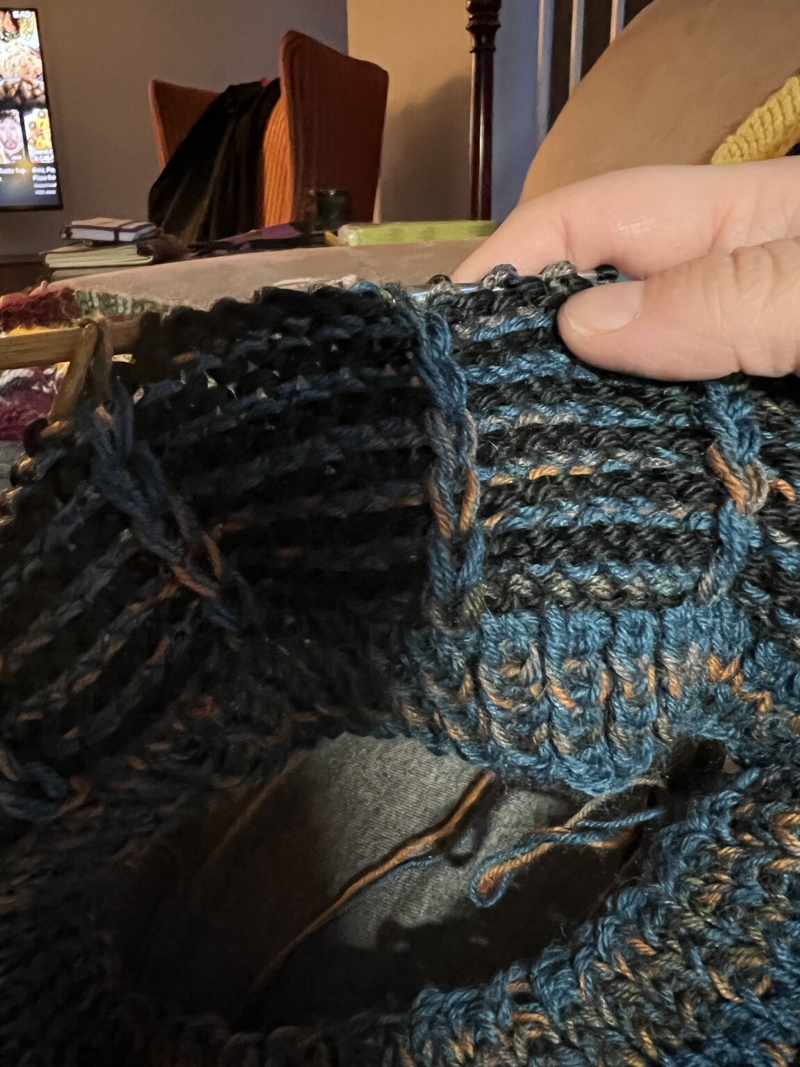 Progress continues! Love a slip stitch pattern with variegated yarn really brings it to life.