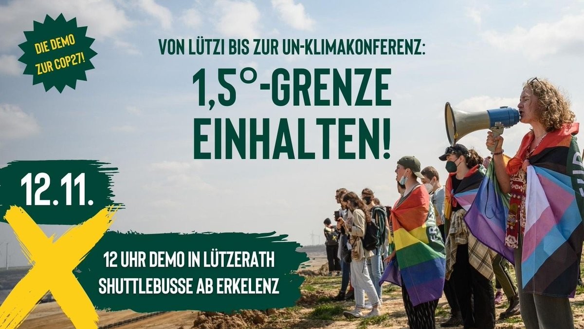 Die Klimakrise auf 1,5° begrenzen, das ist das Ziel der #COP27. Doch 🇩🇪 will viel zu viel #Kohleverbrennen. Deshalb kommt am 12.11. zur Demo nach #Lützerath! #LütziBleibt
