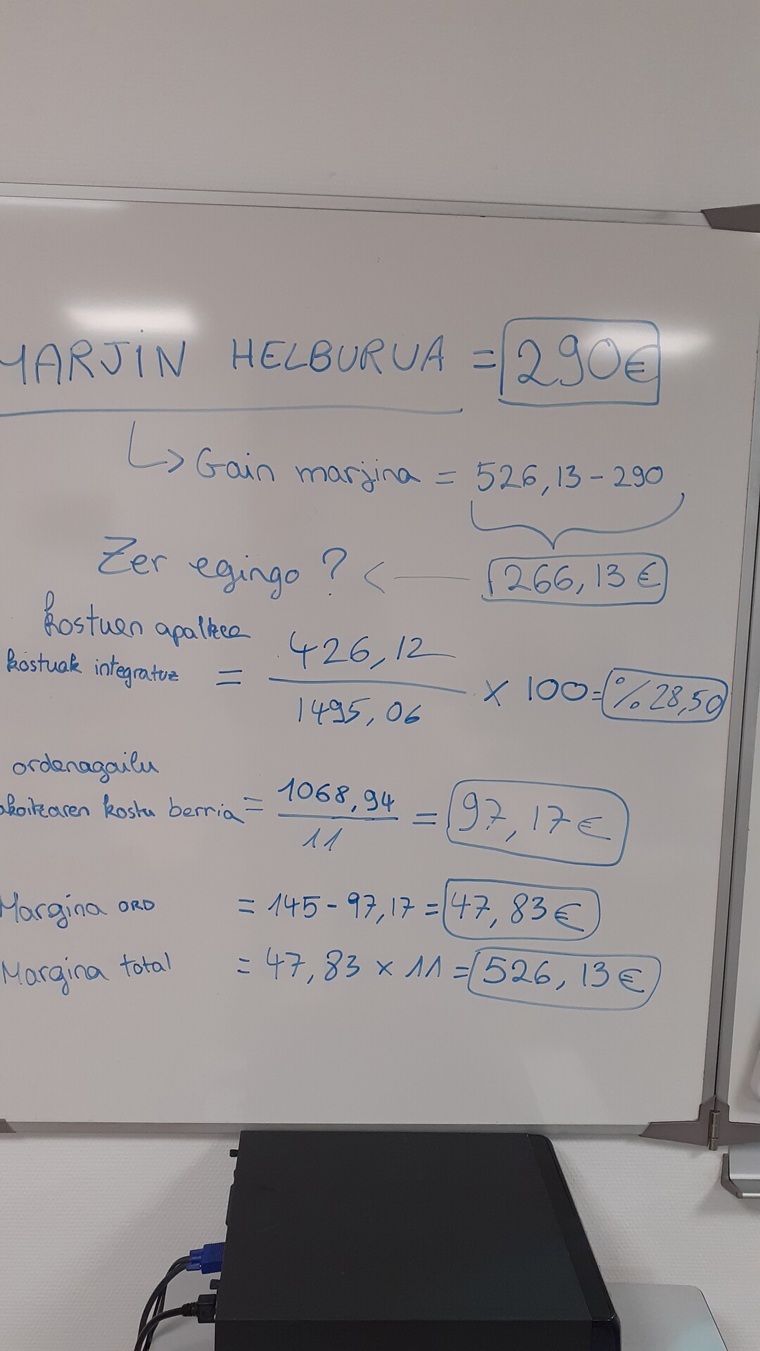 A plana baztertu eta B planera pasa gara, kostu egituran ageri ziren zenbait kostu barneratuz eta marketin estrategiari lekua utziz.