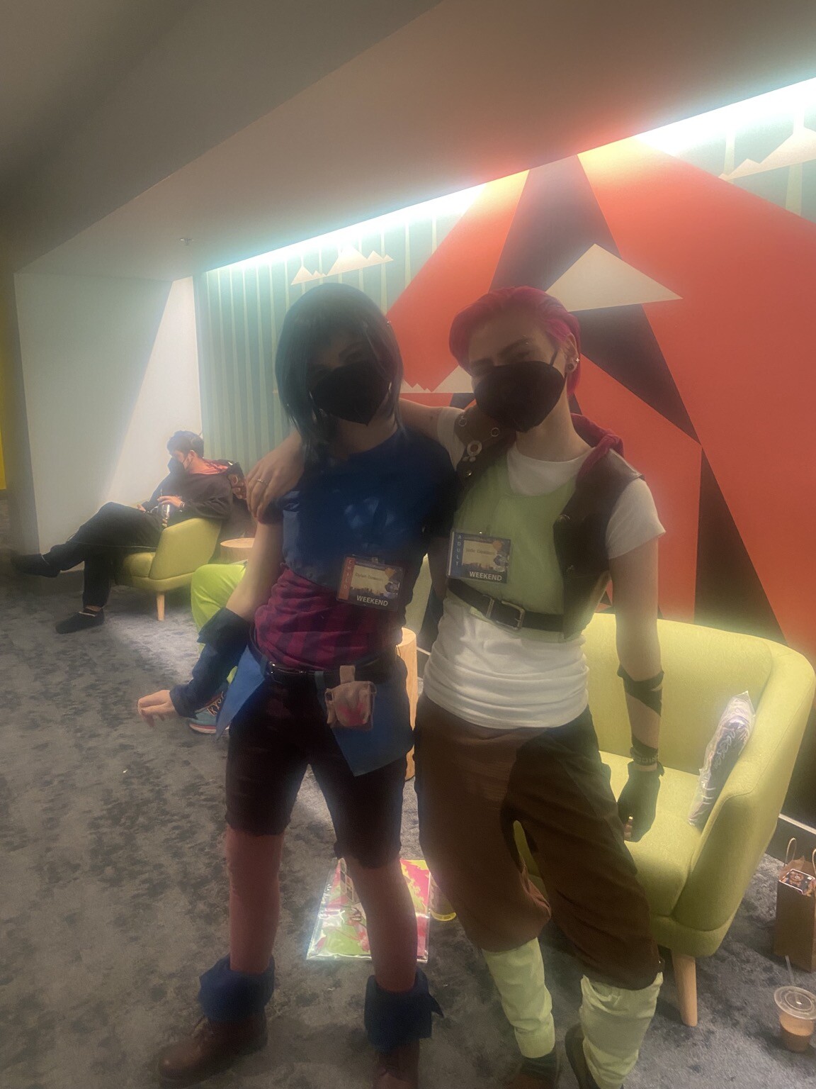 Powder & Vi (Arcane)….either post therapy Jinx or slightly better AU where Powder got to grow up as just Powder. Great #cosplay at #Kumoricon2022
