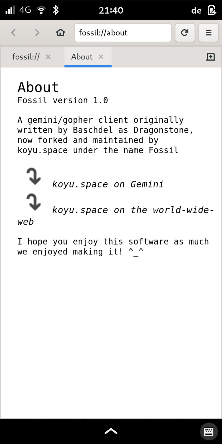 Fossil (https://github.com/koyuspace/fossil) is a #GTK #Gemini, #finger and #Gopher client written in #Vala.