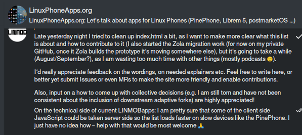 Enough #LINMOBapps work done for today: https://framagit.org/linmobapps/linmobapps.frama.io/-/commit/071c519564a5cab0a1cfb204c21b8ef578fb47b3
