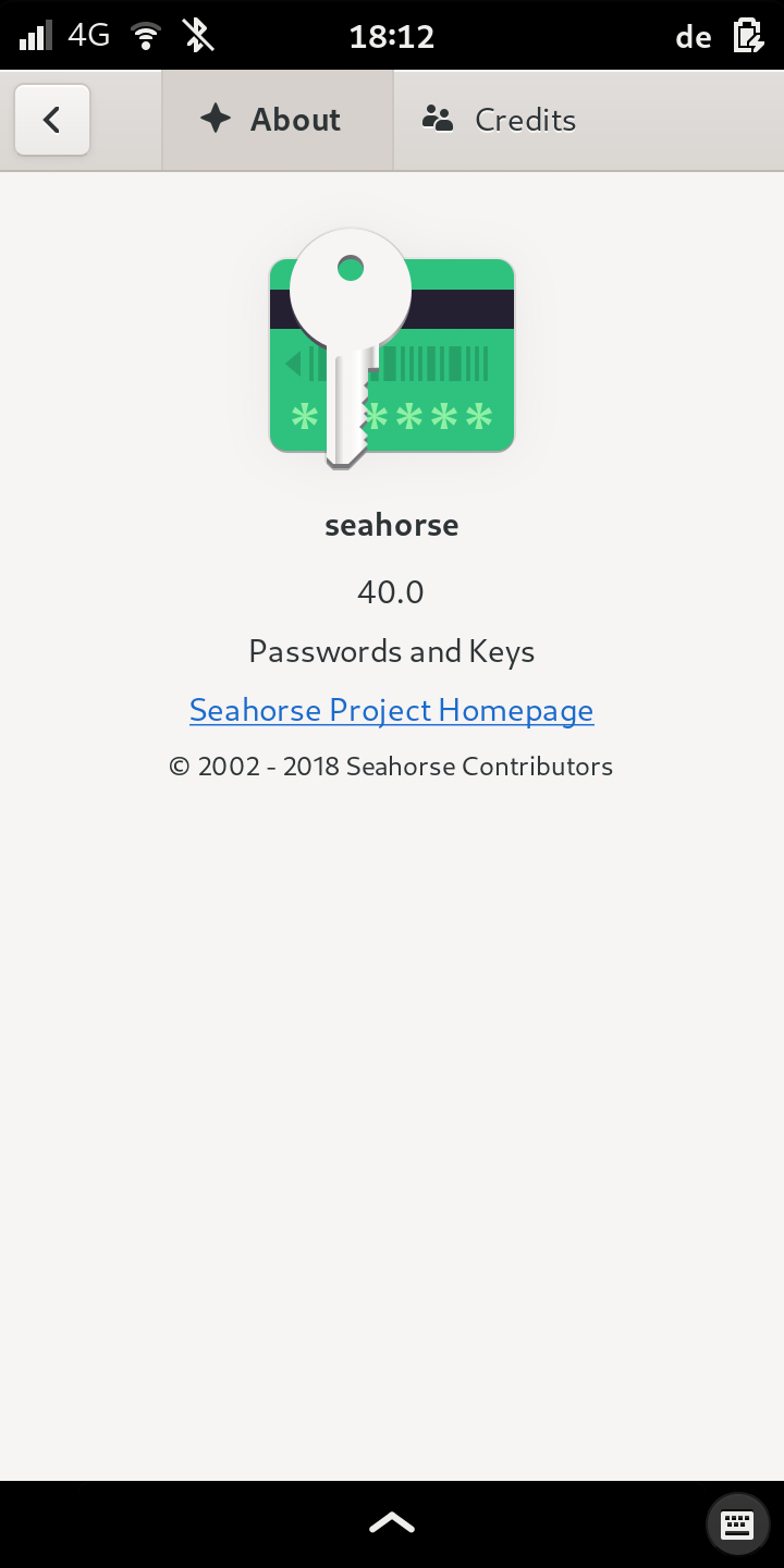 Seahorse (https://gitlab.gnome.org/GNOME/seahorse) is the @gnome password and encryption key manager, which fits the screen almost perfectly in it's 40 release. Now listed on https://linmobapps.frama.io! #LINMOBapps #LinuxPhoneApps #LinuxPhones
