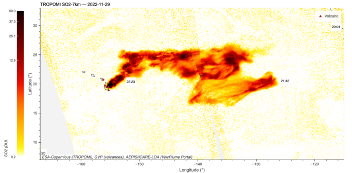 Mauna Loa eruption: massive SO2 (sulfur dioxide) plume imaged by Sentinel-5P TROPOMI.
