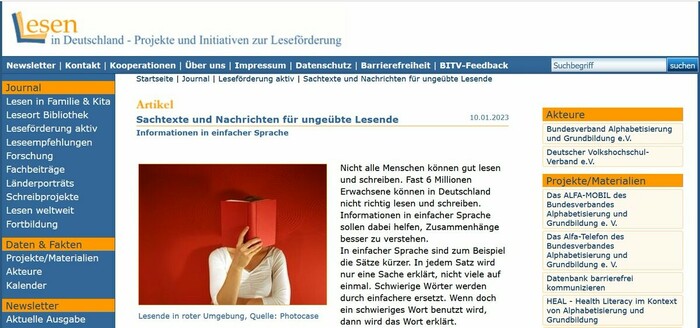 Sachtexte und Nachrichten für ungeübte Lesende.