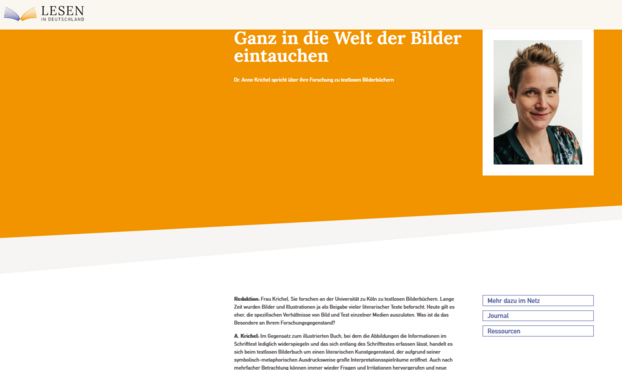 Dr. Anne Krichel von der Uni Köln spricht über ihre Forschung zu textlosen Bilderbüchern - hier bei #LeseninDeutschland, unserem Portal zur Leseförderung: https://www.lesen-in-deutschland.de/journal/1868