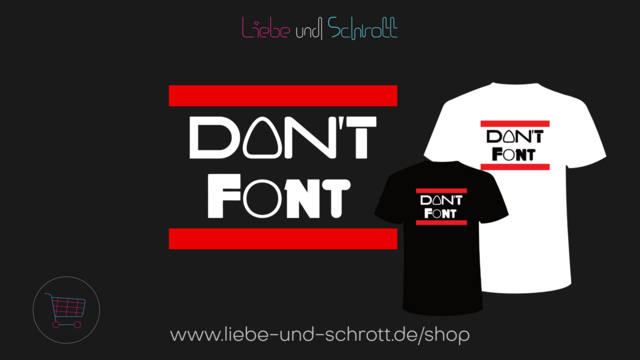 Als Hommage an die mit wilden Fonts und Grafik gespickten PowerPoints, ist dieses Motiv unter dem Motto "Don't Font" in Anlehnung an den Song "No Fronts" der Band "Dog Eat Dog" entstanden. Weniger ist mehr!