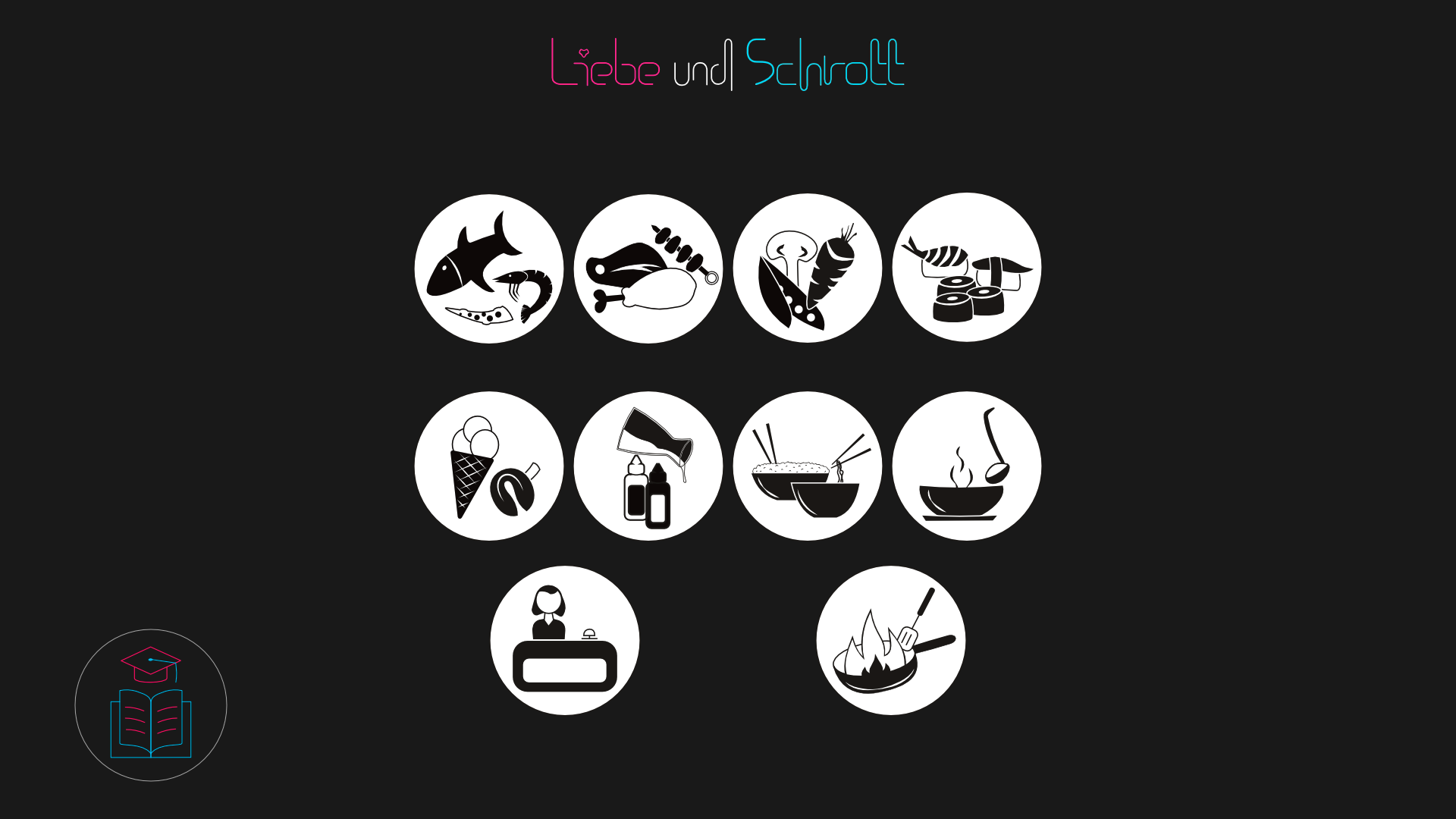 Passend zum Semester-Projekt "Amttai - Mongolian Barbecue" galt es zehn Piktogramme zu entwickeln, die eine einheitliche Linie aufweisen, leicht erkennbar sind und in unterschiedlichen Größen funktionieren.