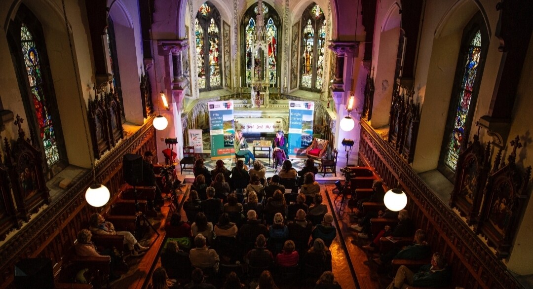 An amazing photographer called Fiona Morgan took this photo of my event at the Dingle Literary Festival: me being interviewed by Deanna O'Connor, in the chapel at An Díseart. 😍 #Books #Writers #LiteraryFestival #Dingle