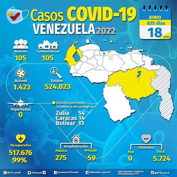 Día 825 | Lucha contra la COVID-19: Venezuela registra 105 nuevos contagios comunitarios sin fallecidos