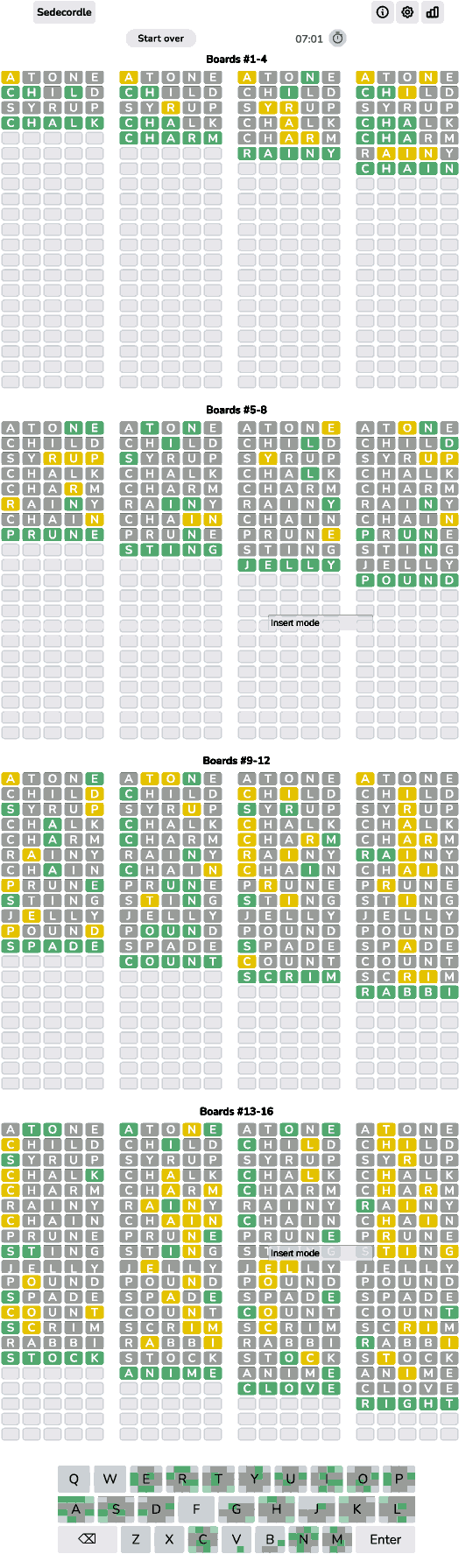 Finally, a perfect* sedecordle! (sedecordlewordle.com/)