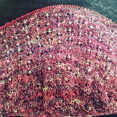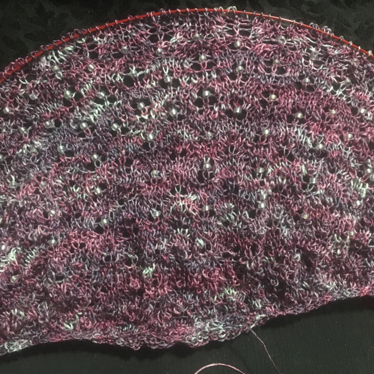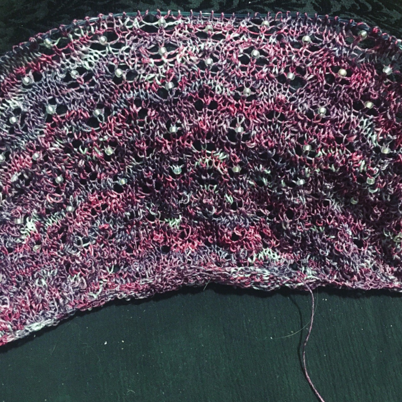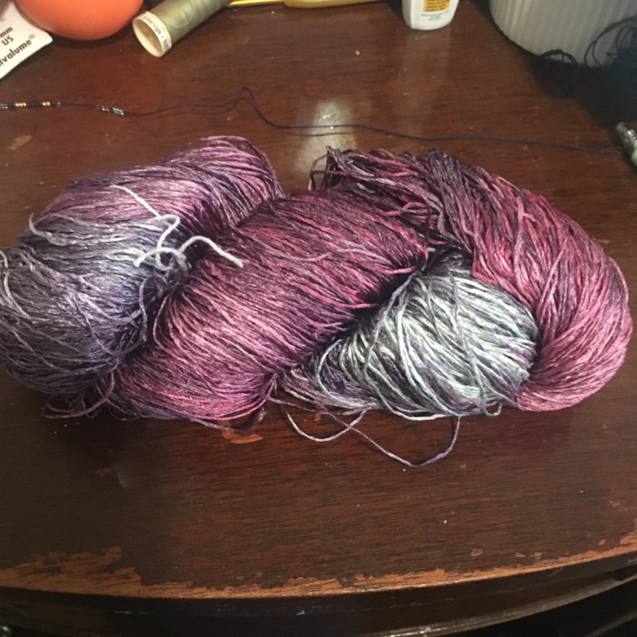Next MKAL shawl starts Valentine’s Day and is themed to match, so this is the right yarn. Some magpie part of my nature was taken with it (it is very shiny) but the colors are very much not to my gothy tastes and I will instead be selling the final project off to a GQ friend at much less than it’s worth. As a fellow knitter they know exactly how good a deal they are getting, and I get to subsidize my hobby. Which is good - gotta go buy 1300 beads XD