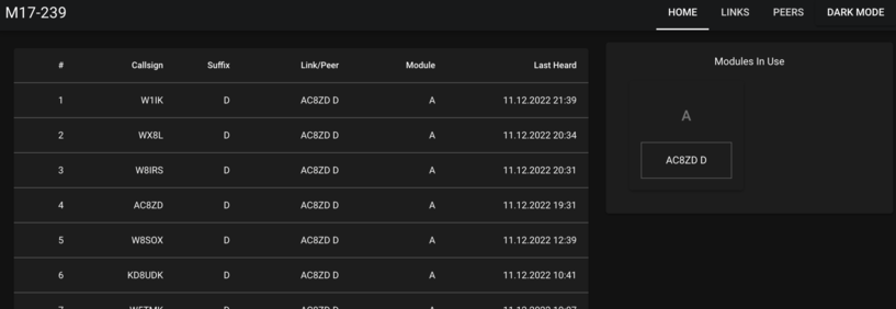 tinkering with dark mode for #m17project reflector dashboard. WIP. Code is here.. https://github.com/dbehnke/gomrefdash/tree/dbehnke/quasar
