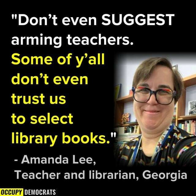 Stop the #MAGAmeltdown. Republicans in Red States have slashed teachers' wages, public school funding, and banned books. They have blocked safety measures to curb mass shootings. Teacher are scared. They are being vilified by GOP for teaching history. Our children deserve better.