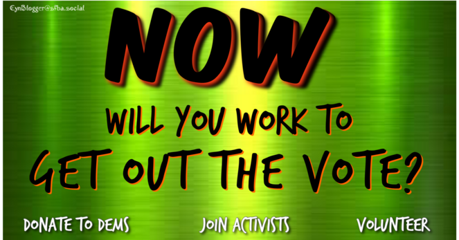 Personal engagement, donations, working with activist groups, volunteering locally, statewide & nationally, can all make the difference to GOTV.