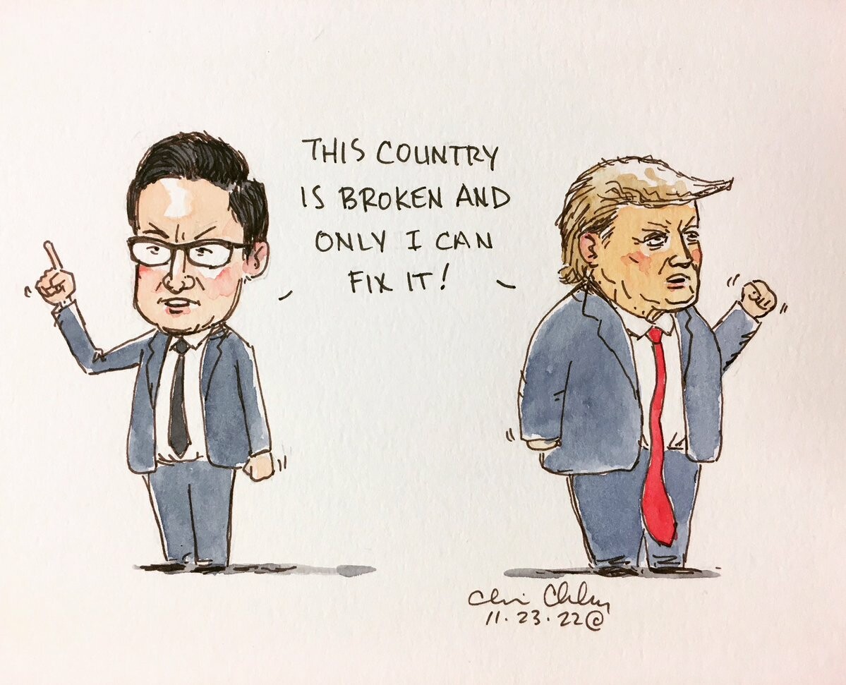 You’ve heard Poilievre’s talking points before—from that grifter con man down south. Not the most flattering style to emulate, but it sheds light on PP’s character. #cdnpoli #mbpoli #politicalcartoon #conservative #pierrepoilievre #populist #cartoon #illustration #lies
