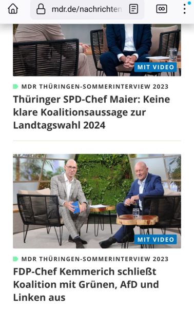 Das hier, zum Vergleich, sind übrigens die Hauptschlagzeilen, mit denen der #MDR seine Sommerinterviews inclusive #Höcke auf die MDR-Website stellt.