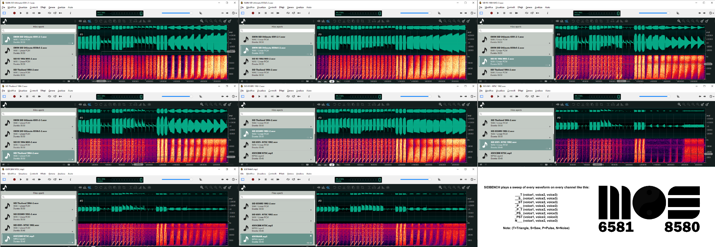 #MOS6581 come disse una volta il compianto Ben Daglish (https://en.wikipedia.org/wiki/Ben_Daglish) il SID è uno strumento musicale a tutti gli effetti : non c'è infatti un SID che suonerà come un altro SID. Per curiosità questa Domenica ho registrato l'output di una serie di SID usando il sidbench come metrica di base (http://ploguechipsounds.blogspot.com/2010/05/one-page-basic-sid-benchmark.html).Il risultato è ovviamente che sono tutti diversi: La palma del peggiore? Probabilmente il made in Thailand è quello che suona peggio.