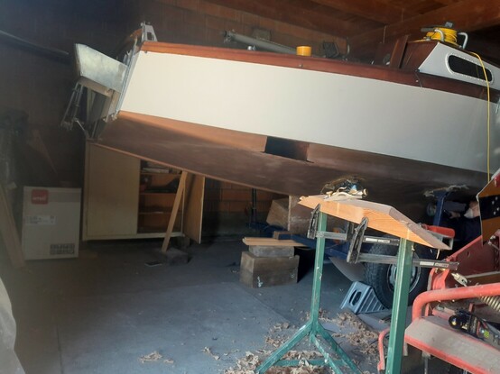Arbeiten an unserem Projektboot, einer Corsaire, welche noch nicht wieder schwimmt. Endlich haben wir die Musikboxen instaliert und können nun #MalÉlevé höhern wärend dem Arbeiten. Yuhuu