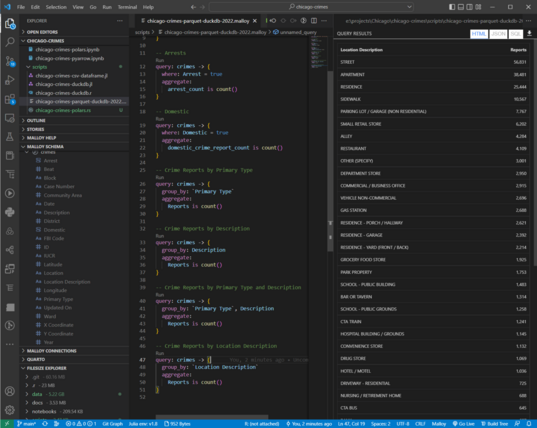 #datatools #duckdb #parquetdata #ChicagoCrimes #MalloyData