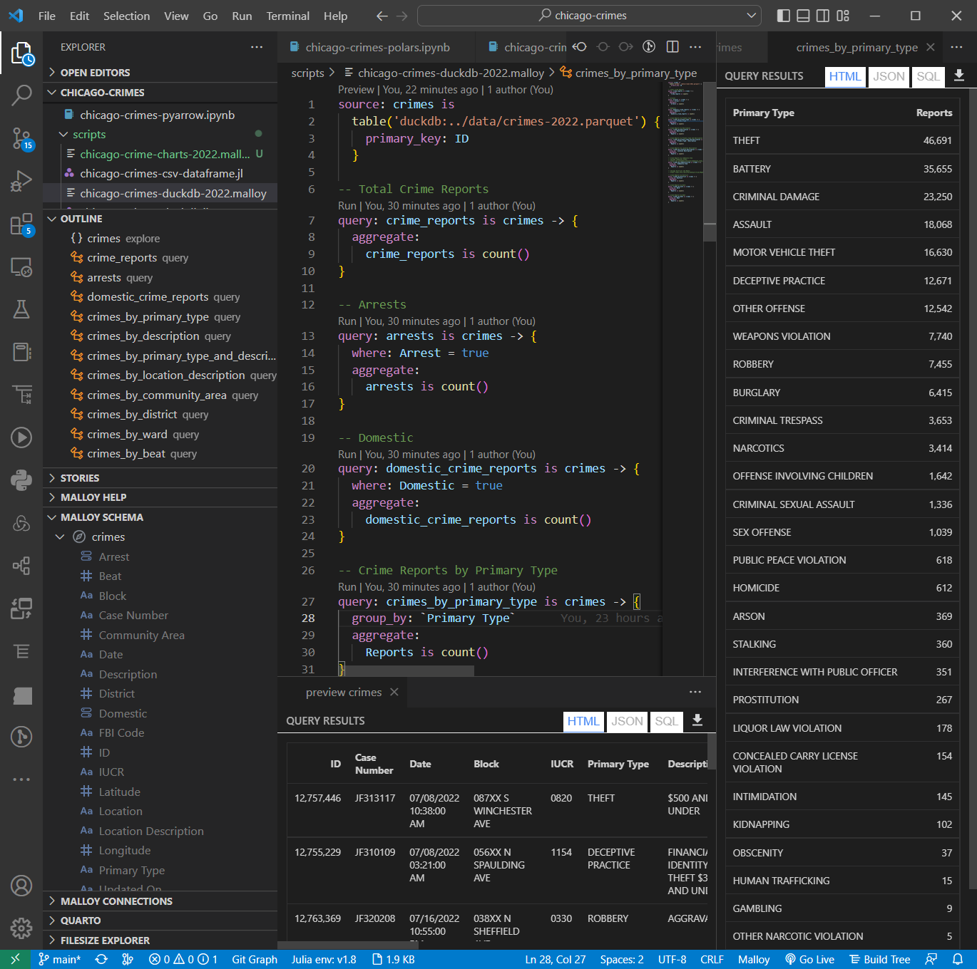 #datatools #vscode #MalloyData #ChicagoCrimes