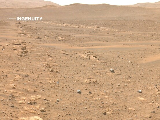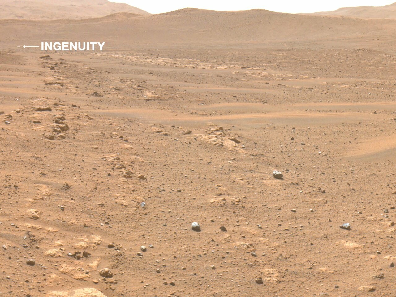 The #MarsHelicopter and I have been closer together lately, allowing us to snap pics of each other for the first time in a while. Can you find me in one of these images, and Ingenuity in the other? 🔍