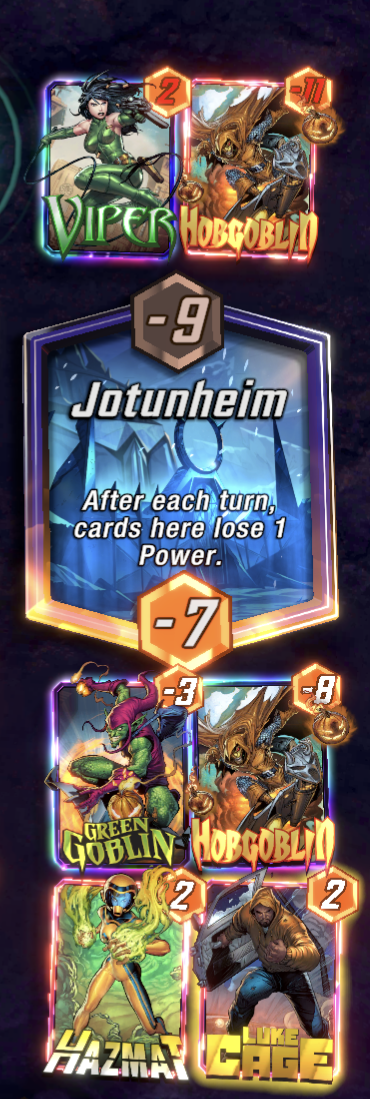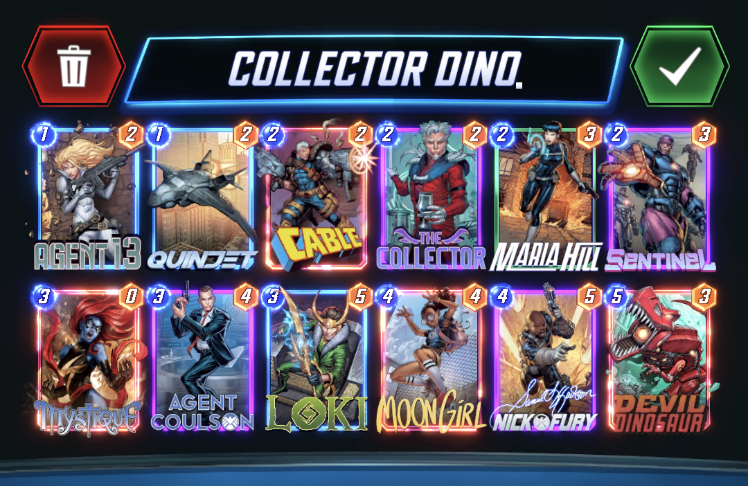 I played a game where I played Agent 13 on the first turn and got Nick Fury which I'd never gotten. One of the locations was Sakaar so on turn 2 a random card from my hand was played there... Nick Fury. So then I got Galactus, Orka, and Heimdall in my hand. And there was another location that meant all cards were -1 cost, so I could play 2 of them šÆ it was hilarious, Agent 13 might be one of the most fun cards in my opinion. #MarvelSnap