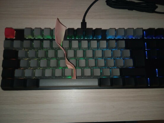 * Bought in 2022, GMMK 1 ISO TKL with Gateron SMD Blue switches and Laser-Etched Dolch Side-Printed PBT keycaps from YMDKey, mixed Italian+German sets to create the Italian (142) layout.
