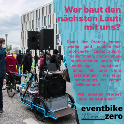 Für anstehende Protestaktionen, wie etwa die #Mediatrike #Lastenrad Parade am 14.08. suchen wir noch coole Leute, die uns helfen, z. B. indem sie Lastenräder fahren und sich langsam in die "Magie" der Veranstaltungstechnik einführen lassen.